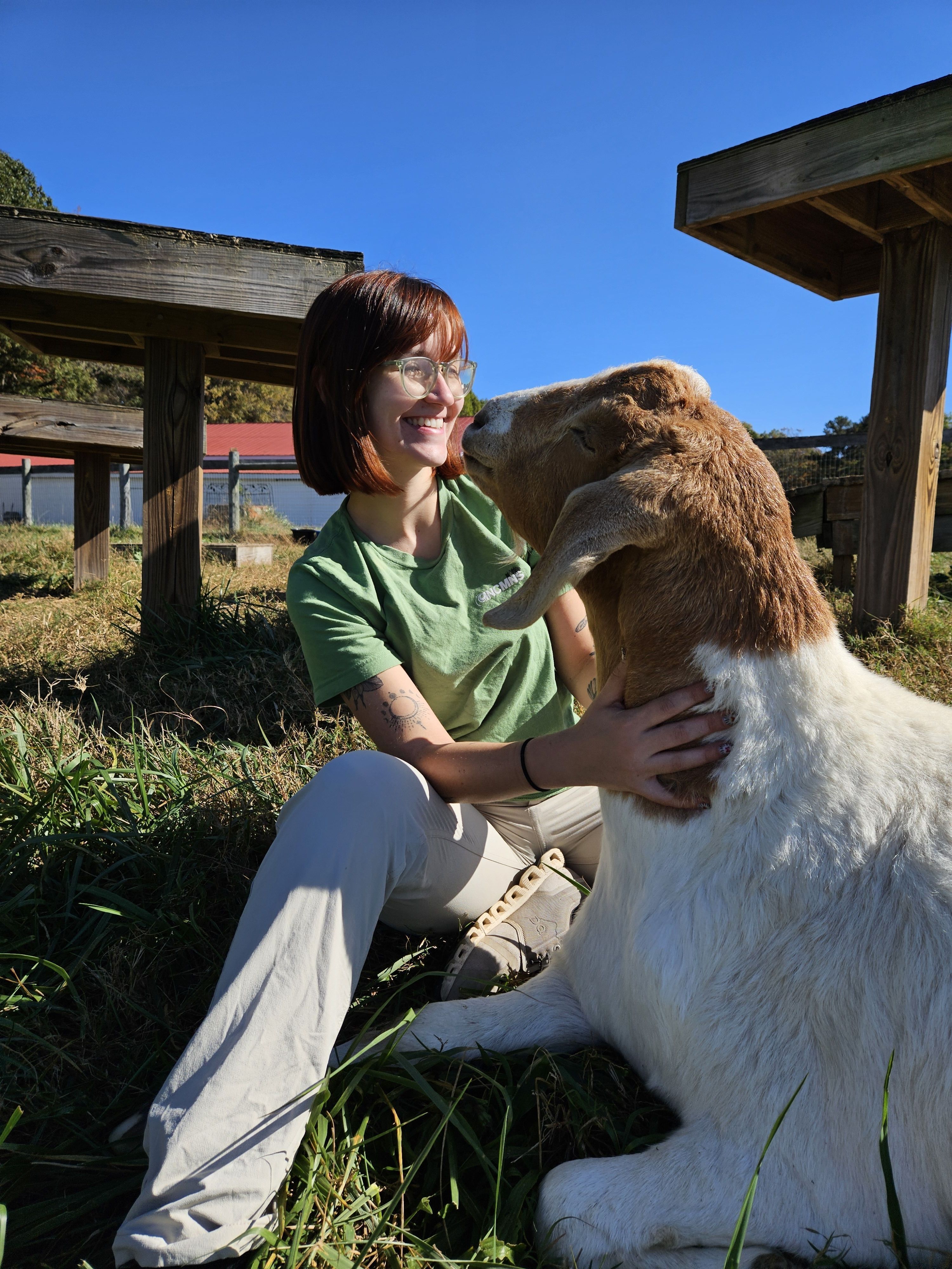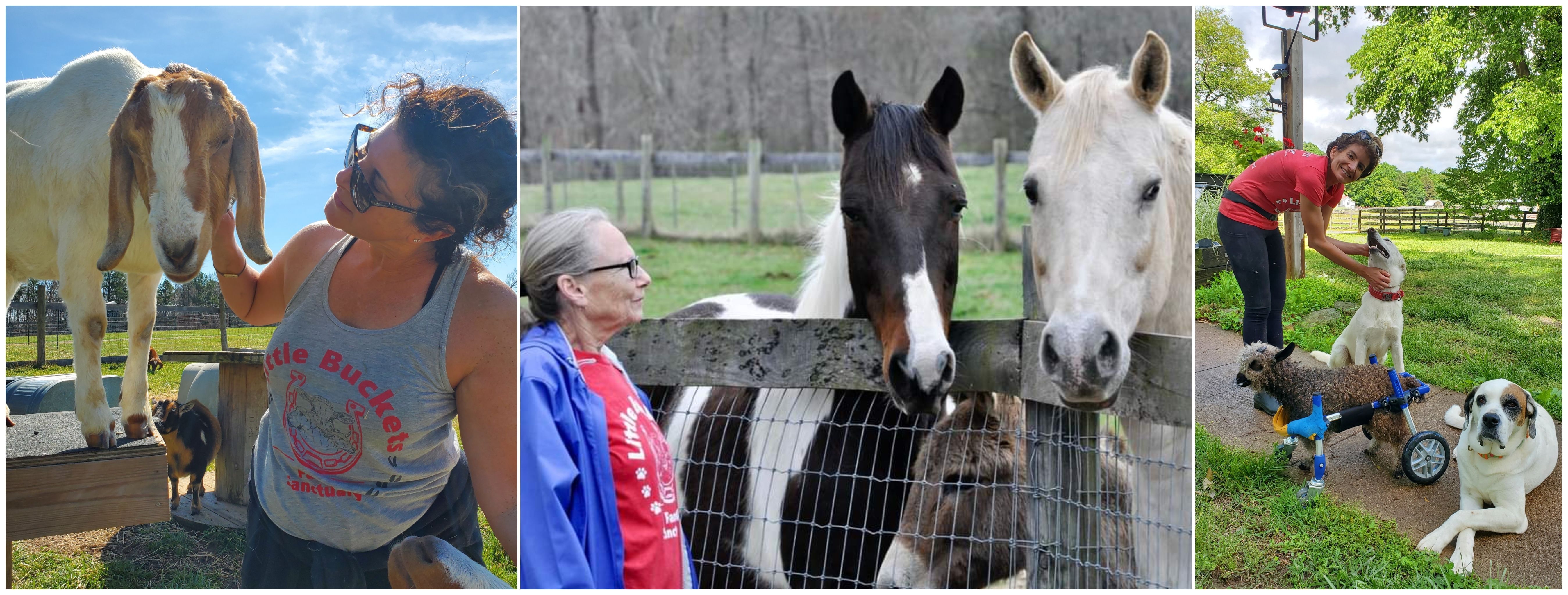 Being smothered by animal loveFun Facts: Gin found us when her sister dropped off a Christmas Tree for the goats. Both then started volunteering and yes they started right before we had no power for 11 days when we had an ice storm. They mucked stalls by headlamps and now being here almost 5 years, that's dedication. We are so thankful for their help. Gin is part of our Wednesday crew and both her and her sister have recruited several neighbors, Genela and Noelle to volunteer. They are able to drive together, have fun and make a huge impact.