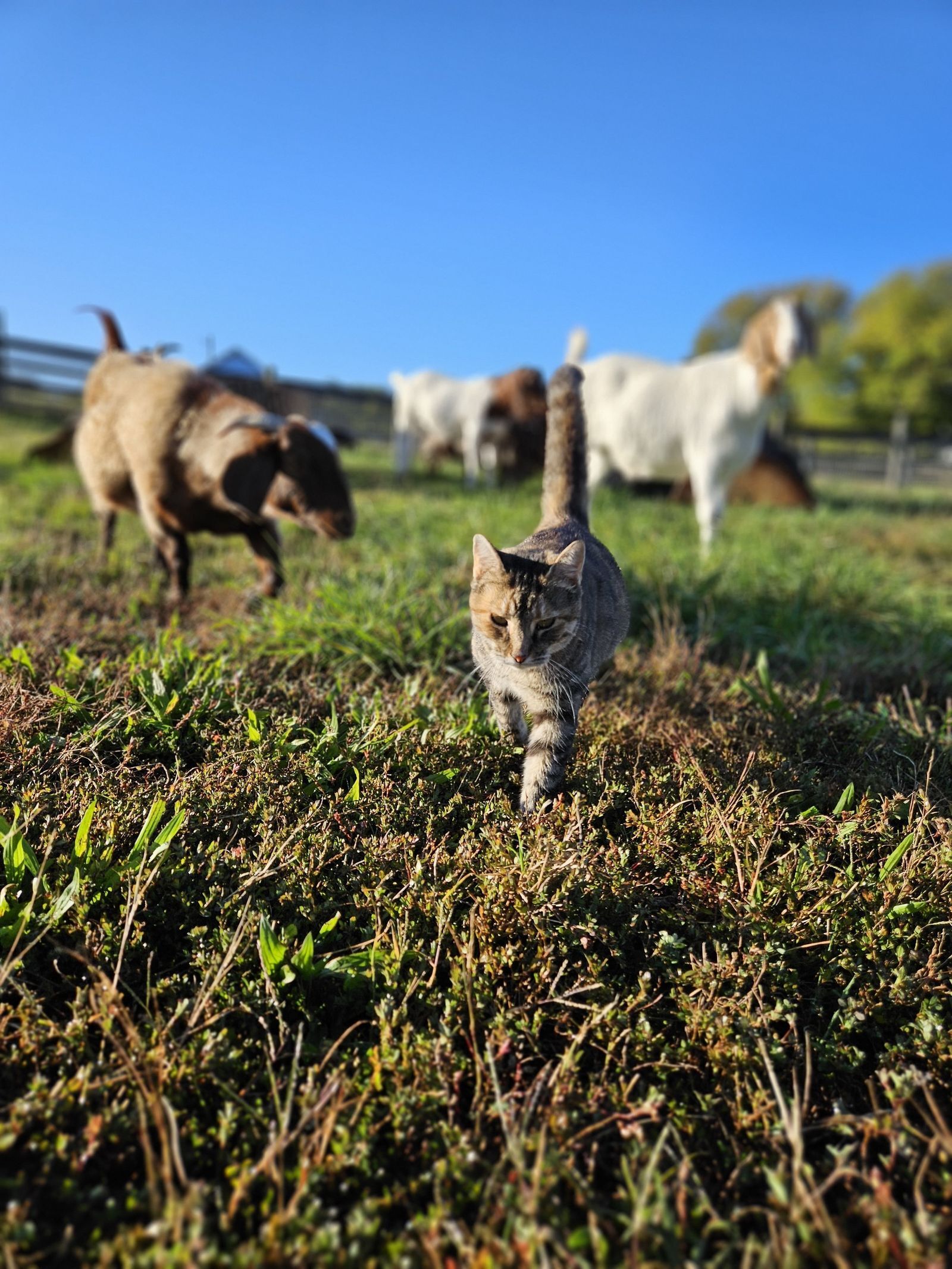 So one day in June 2019, I simply went to the landfill to take trash and as soon as I got out of the truck, Bo Peep walked over to me and rubbed up across my legs. Looking under a tree that is right by where you pull up, I saw kittens, however they were skittish. I could have easily taken her with me but I did not want to take her without her kittens. I checked with an employee and found out cats/kittens are dumped there all the time. So I asked if I was okay taking them and of course they said yes. So I went home and got some food and water and attempted to catch the kittens. After several days of spending hours at the landfill, we were able to get 4 kittens and the mom, who we named Bo Peep. Bo Peep had to have had a family as she is so very sweet. She is one of the first animals to greet everyone that comes to the farm.
