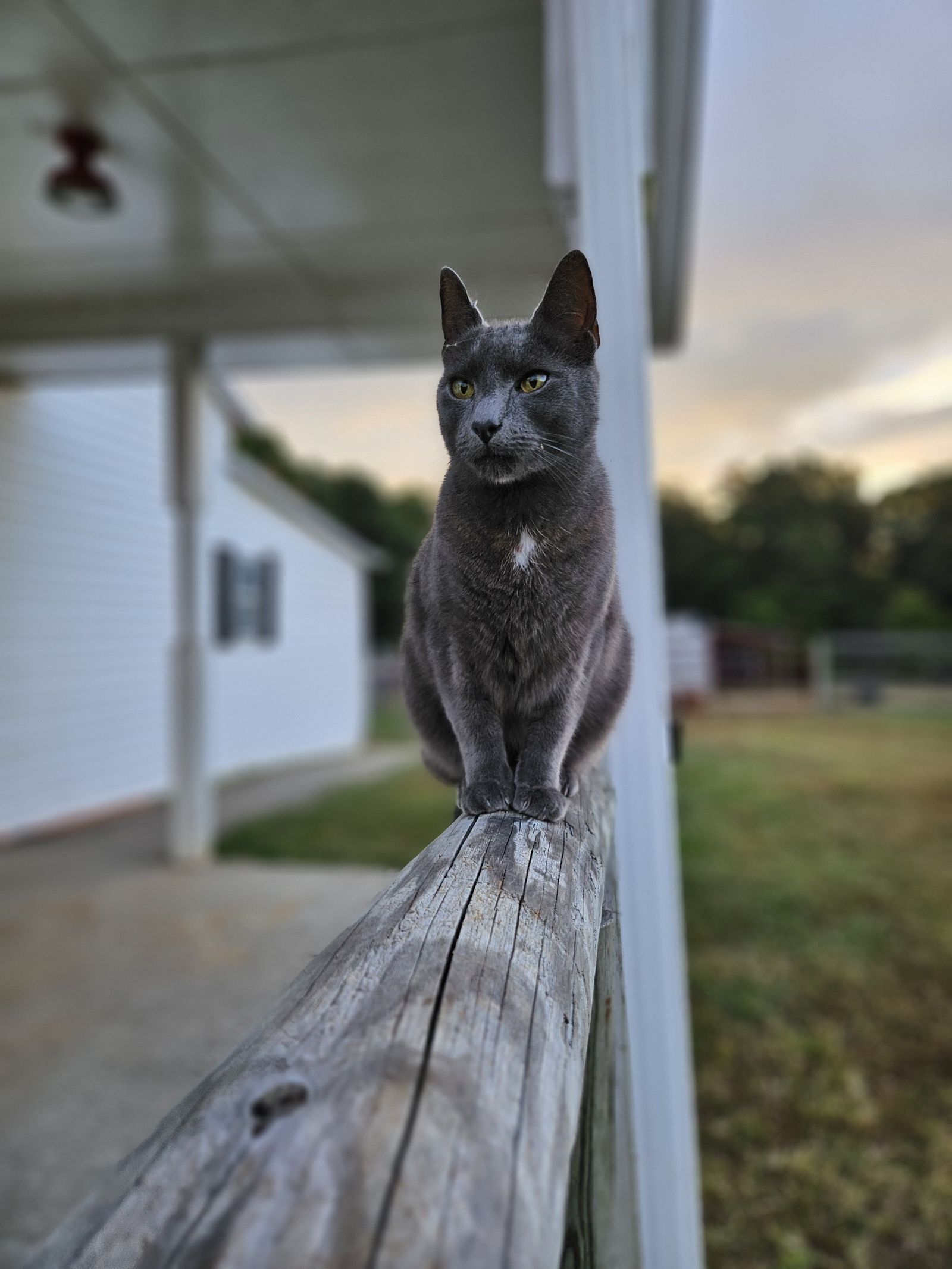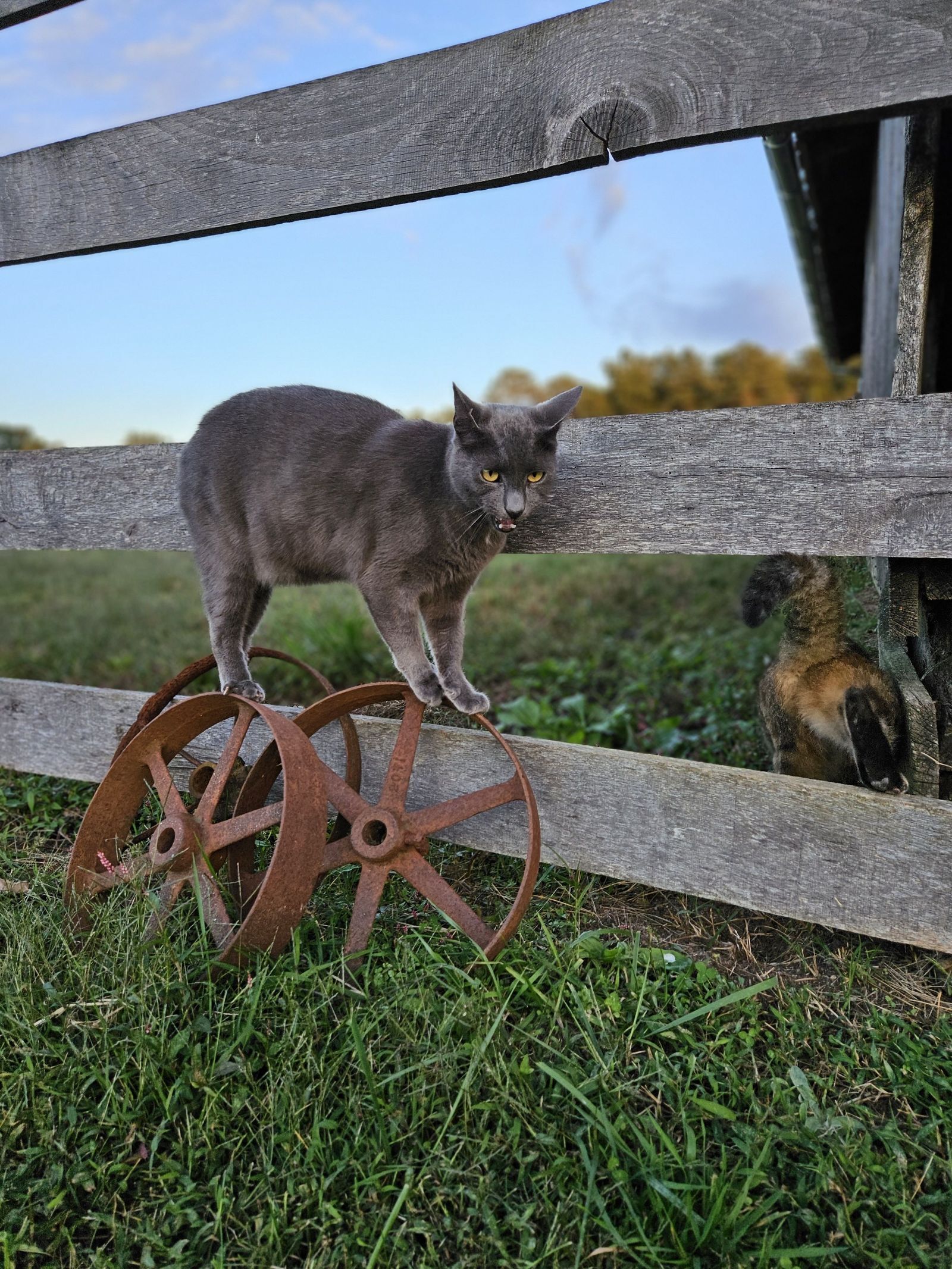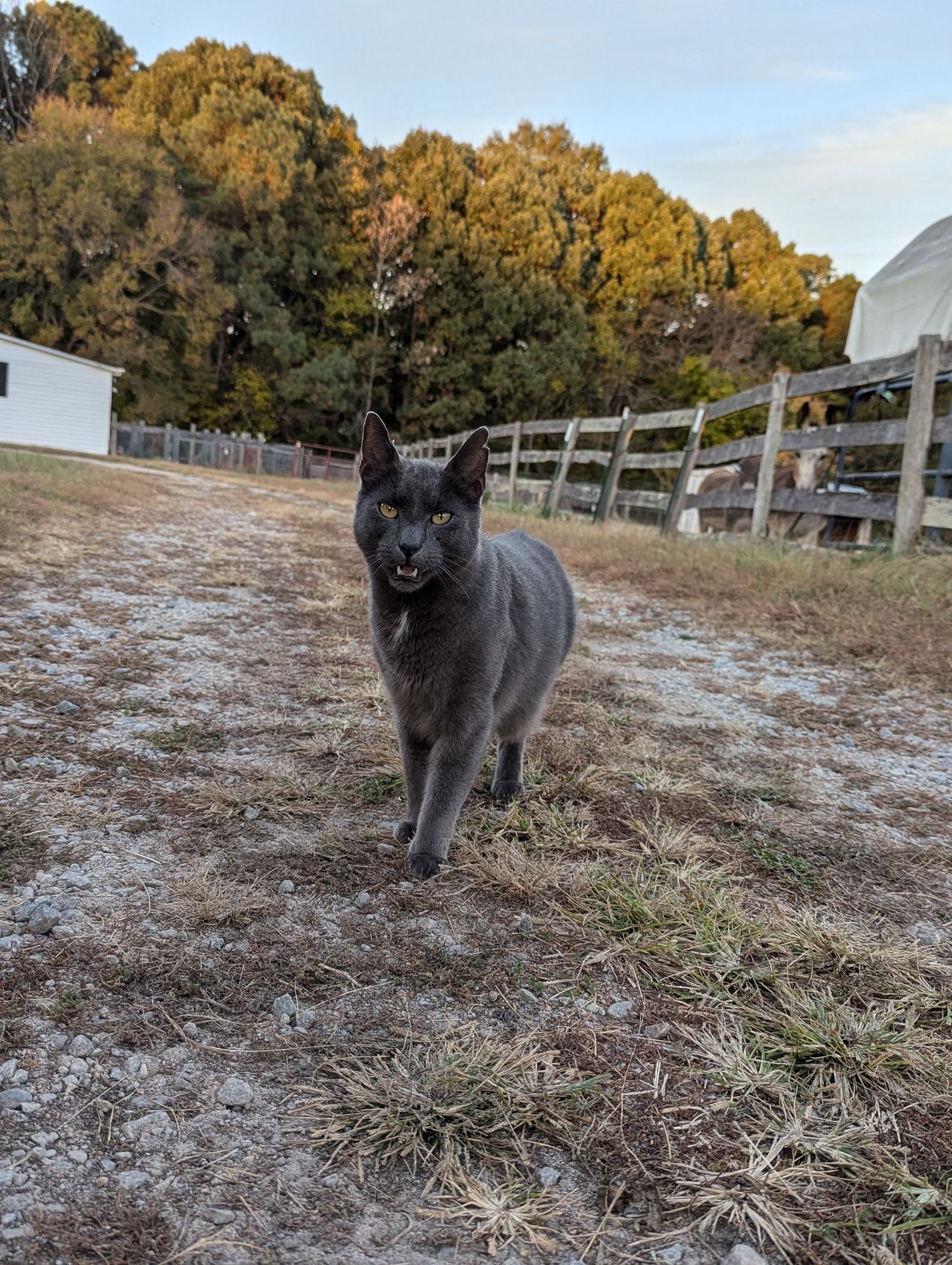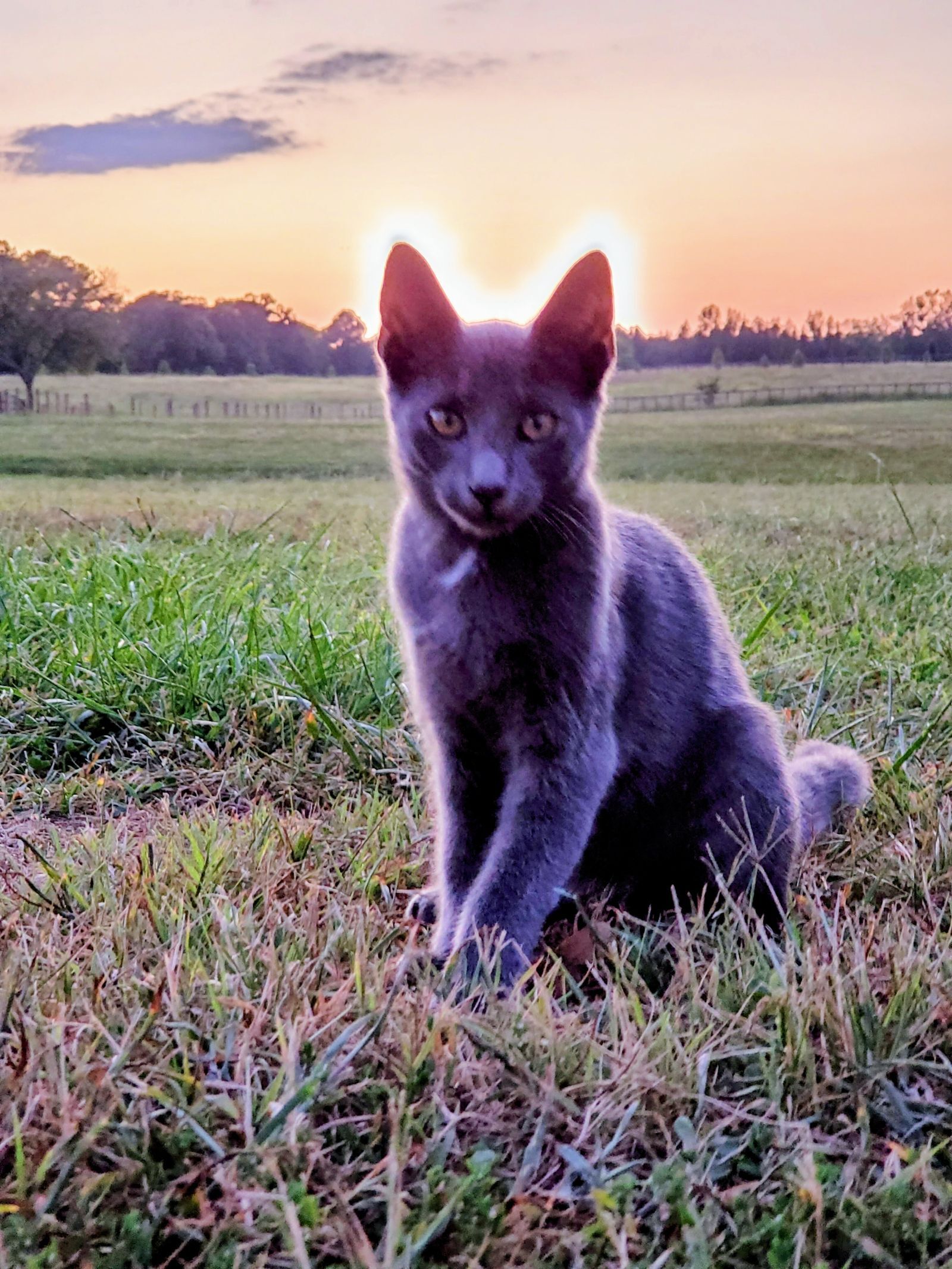 Slinky one of Bo Peep's kittens that were saved in June 2019. He was the hardest to catch and have warm up to me but now he is love bug. He loves his buddy Woody and loves Tater and Tot. He has the most magnificent eyes. His name ended up being very fitting as he is long, skinny, and a gorgeous gray.