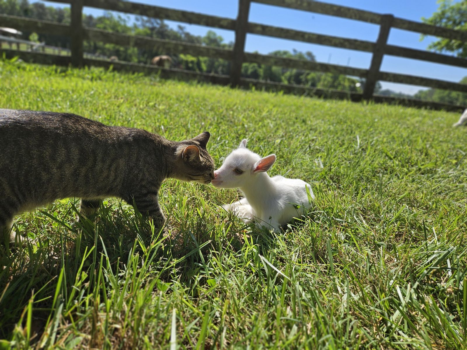 Trixie befriended Harry and is not imitated by any of the big animals. We were trying to adopt her to a new family, mainly so we could continue to help more kittens however Trixie made sure she was going to stay.