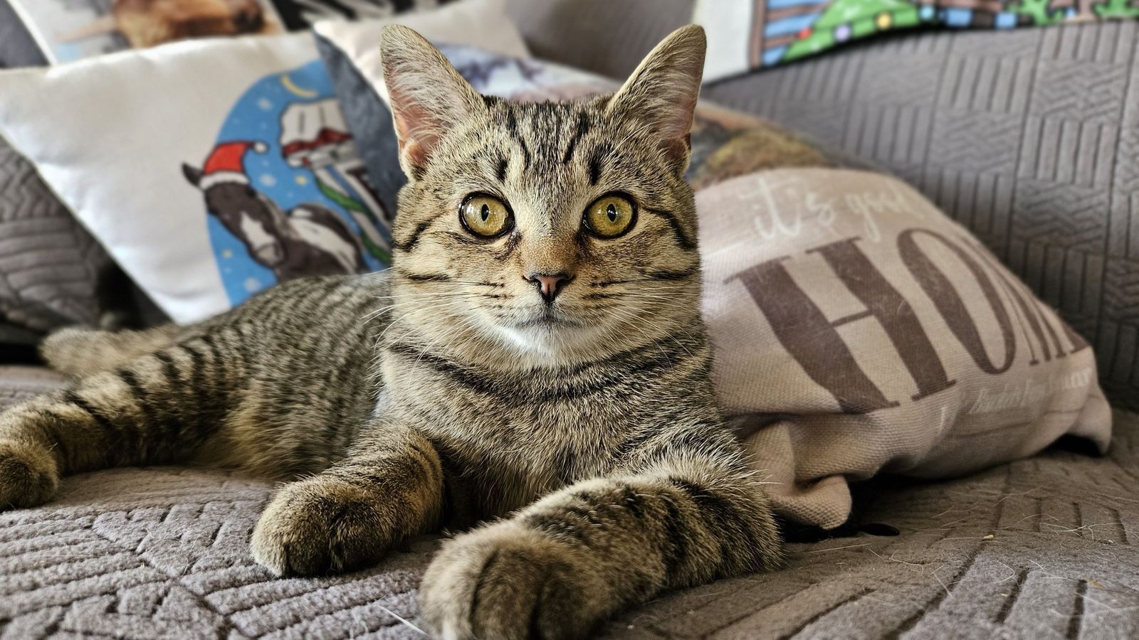 She now lounges most of her days in the house and loves to surprise Colton & Cooper with her little leaps.