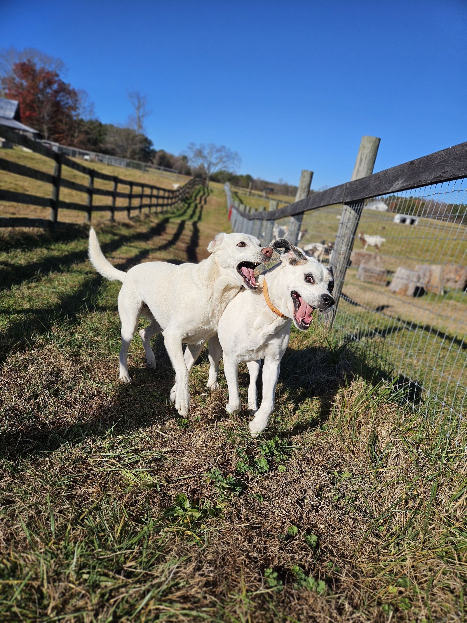 Cooper arrived in February 2022 from Animal Protection Society of Person County, NC. They had rescued him and he was in a foster home. Cooper was about 7 months old when he arrived with the most adorable ears and great smile. He immediately became best friends with Colton and not long after started looking after Tidbit and Pisa with Colton. Some of sanctuary life has been tough for him to embrace but he has come a long way. He looks after Pisa and Lucca, adores Colton, plays with Trixie & now has another best friend in Cash. Those two have become instant best buds and both look after the farm and me. And absolutely love to play and run together.