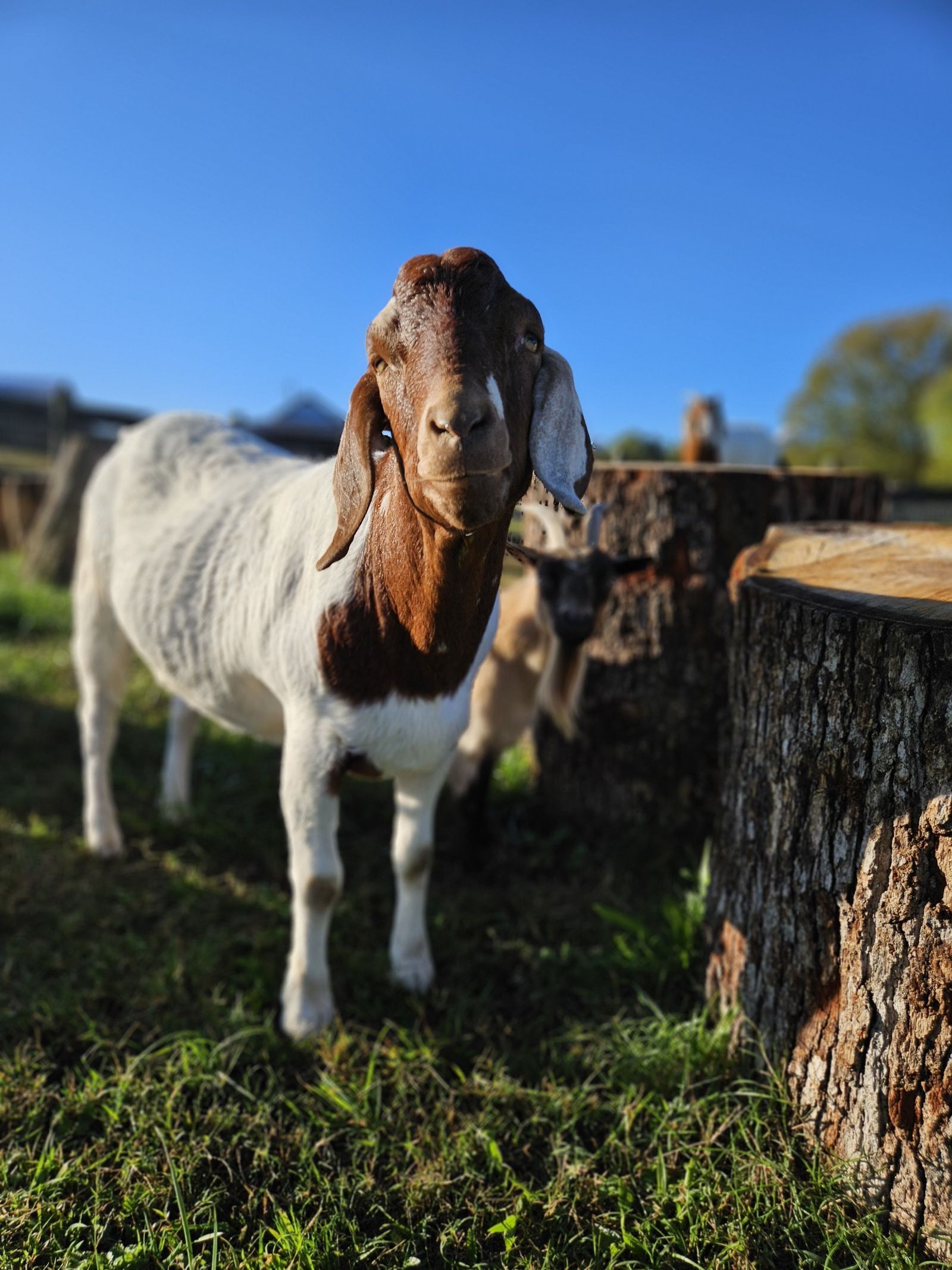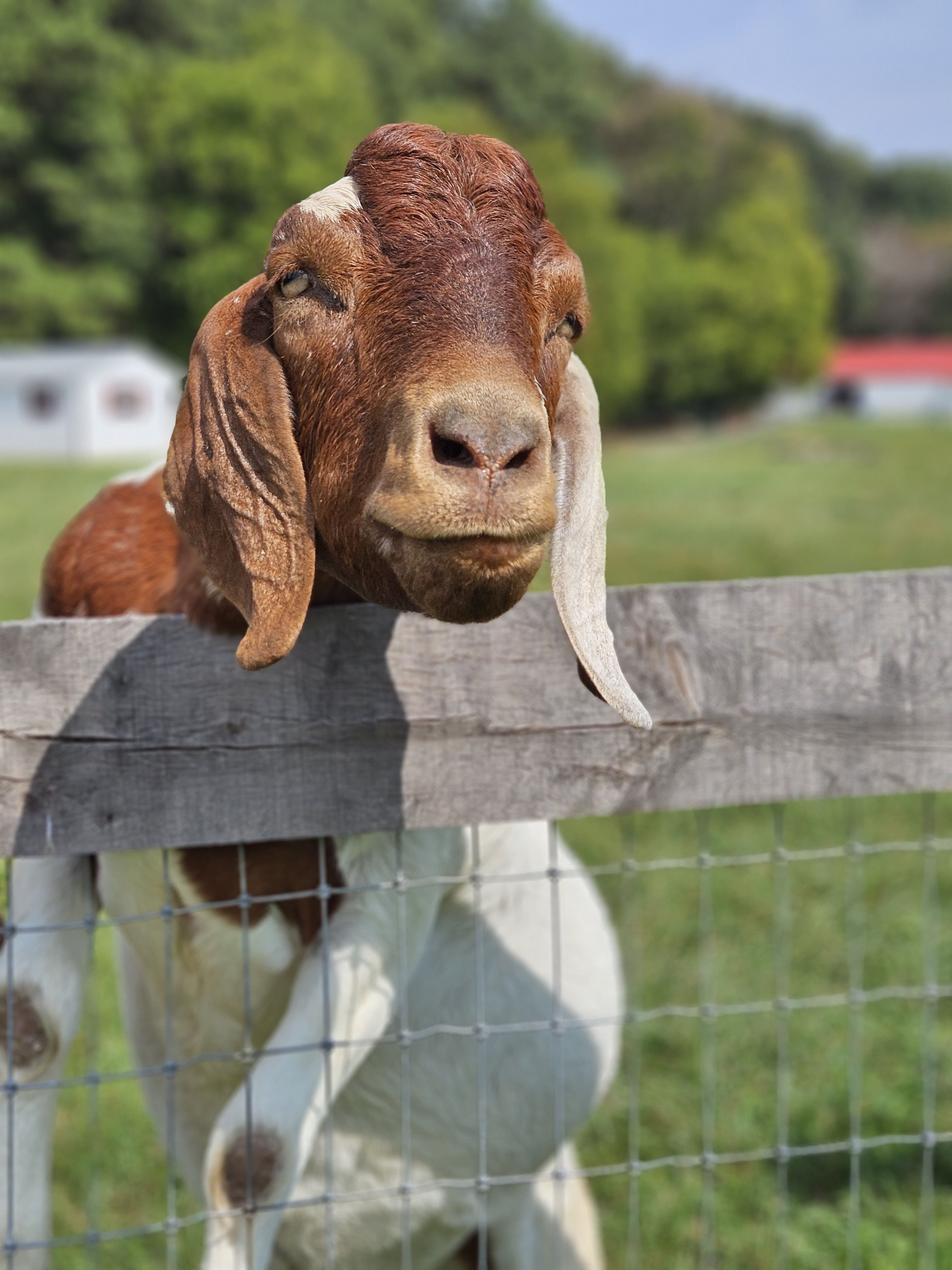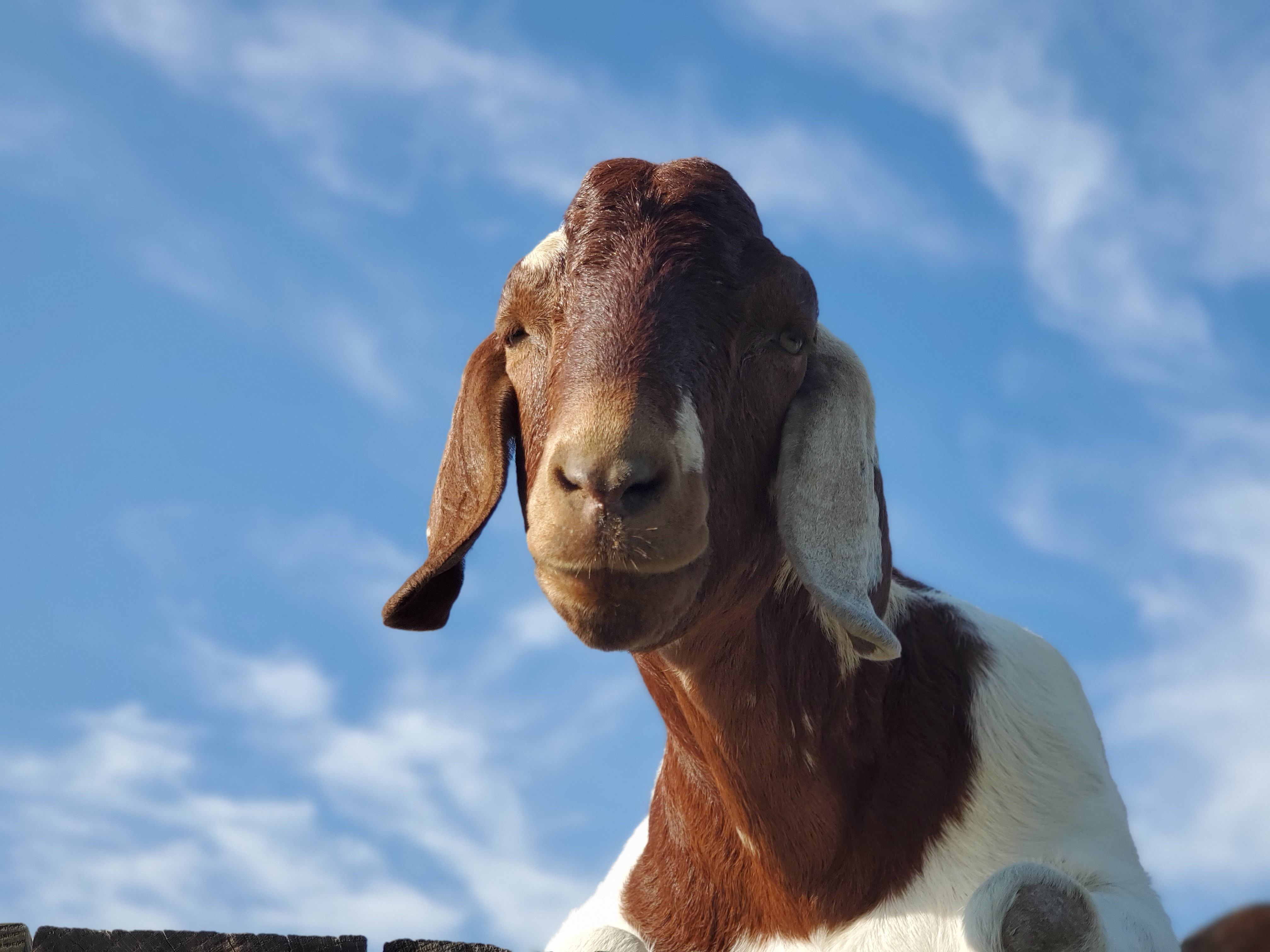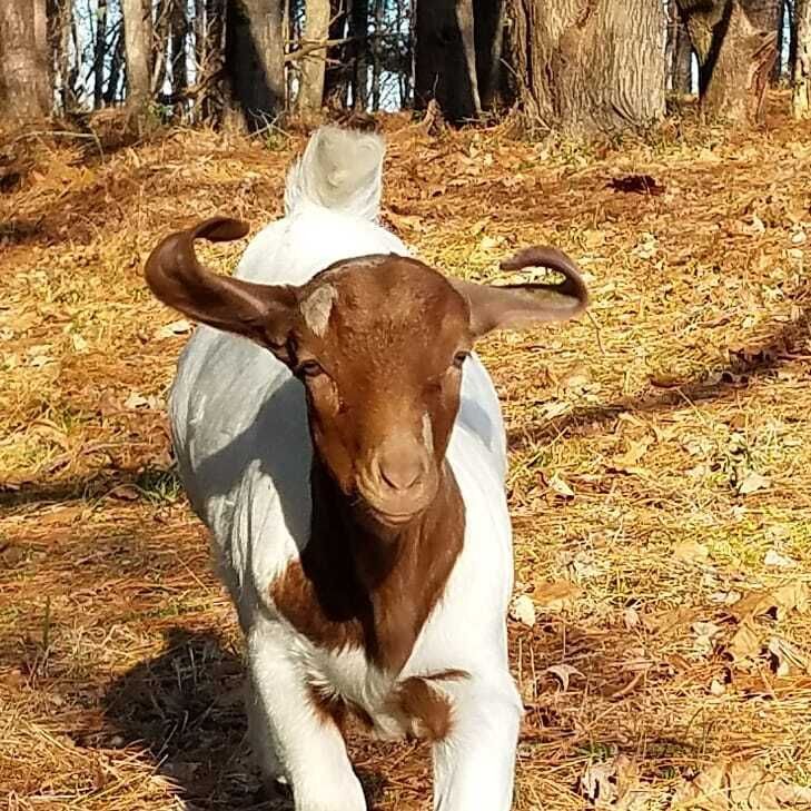 I was contacted by a student at a vet school who wanted to save a pair of goats from going to auction as her school sends all animals at the end of each semester to auction unless they have are spoken for ahead of time. I absolutely wanted to help and with the help of amazing people, we arranged transport each doing different legs of the trip. They arrived in December 2018 just about 3 months old. They had bonded on the trip and the two of them were always laying together. One of the definite couples on the farm. Charlie and Blondie were the start of the flying ear gang as those ears are absolutely amazing. Charlie is a little bit of a class clown. Charlie is best friends with Pete and Blue. He is a very big boy estimated to be 250 lbs. But oh so sweet.