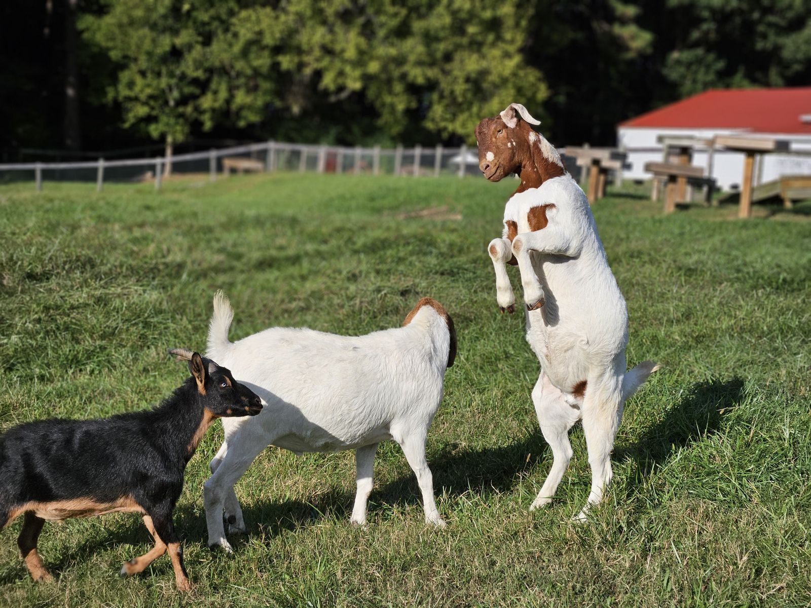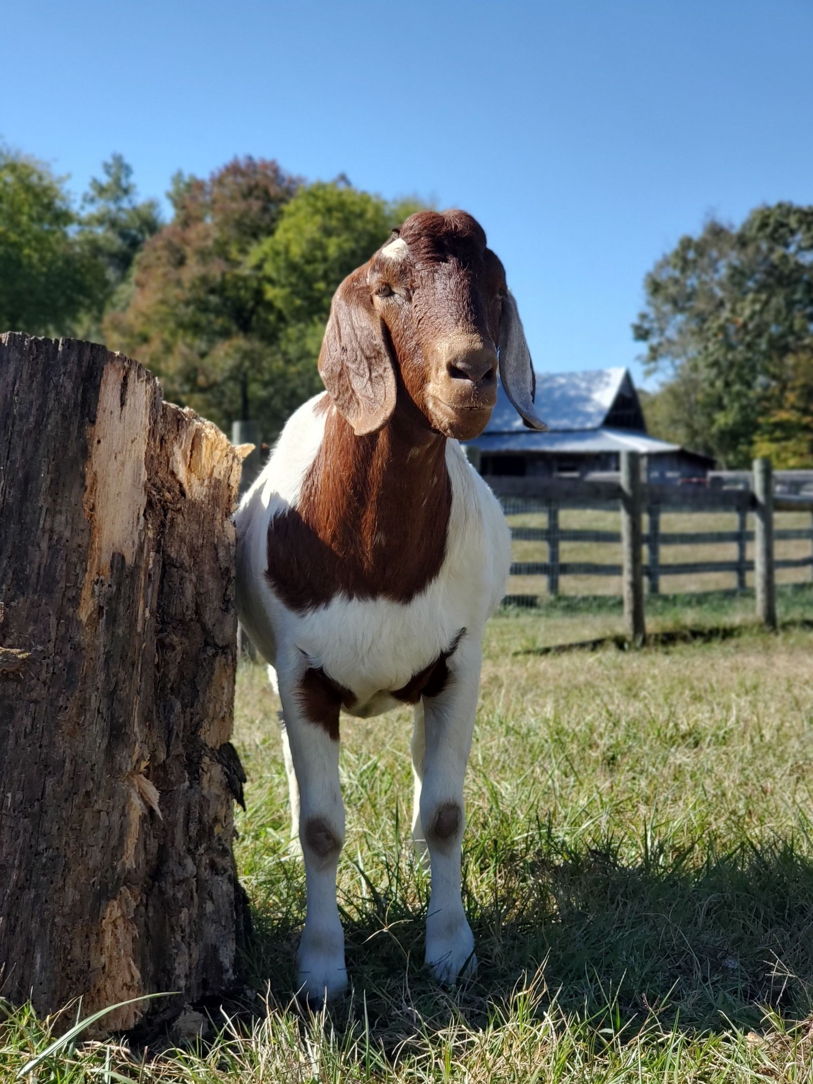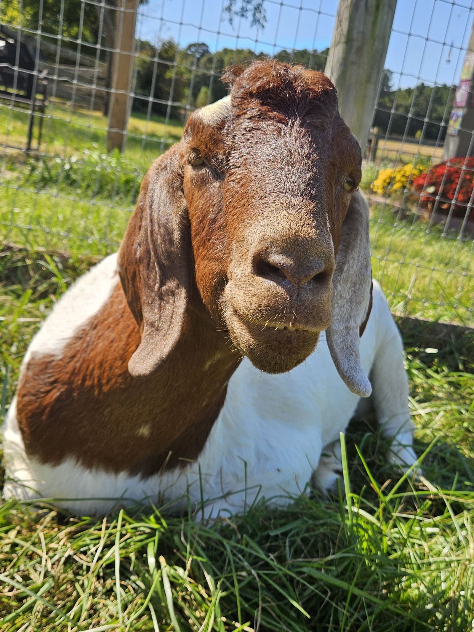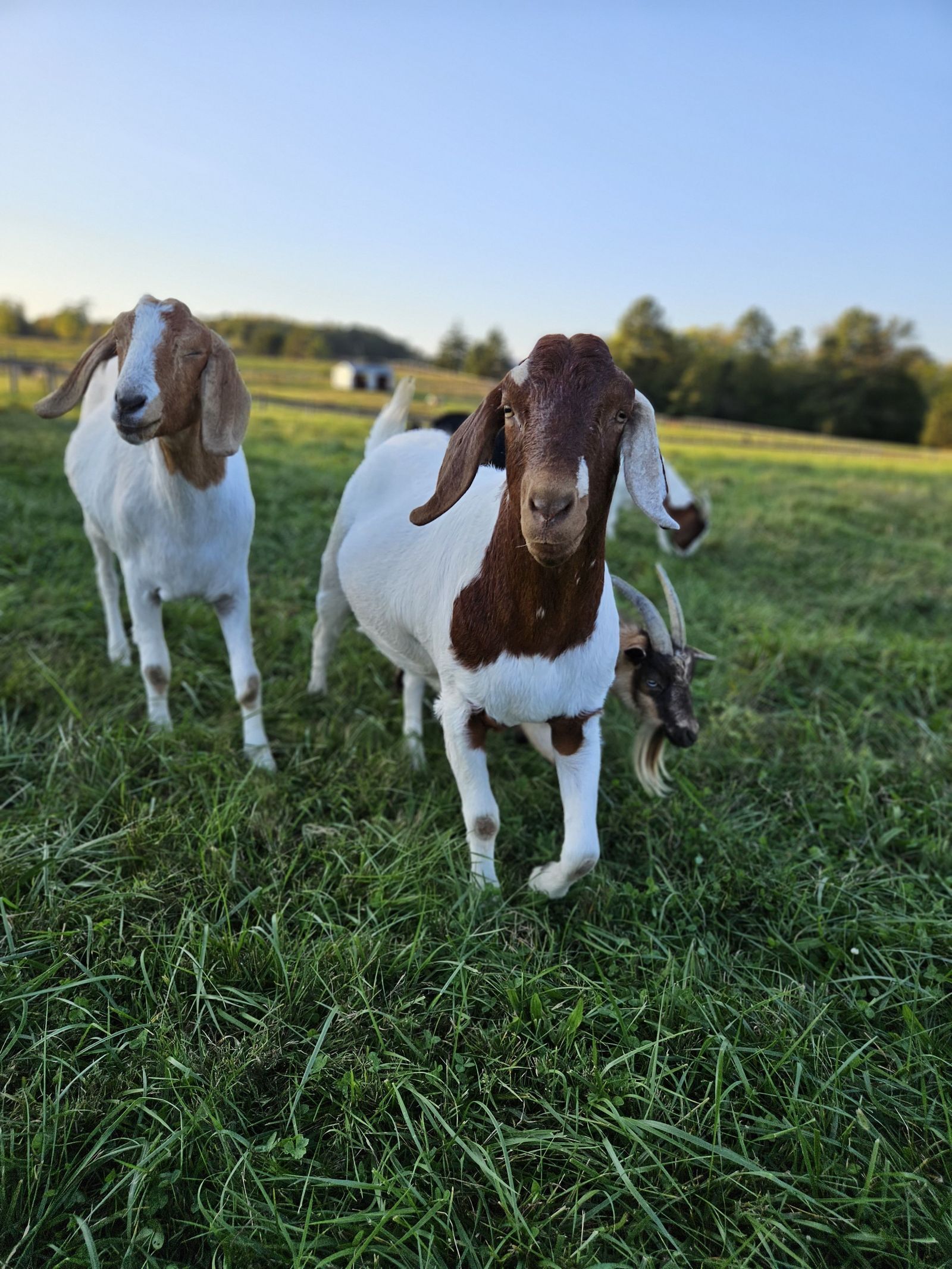 I was contacted by a student at a vet school who wanted to save a pair of goats from going to auction as her school sends all animals at the end of each semester to auction unless they have are spoken for ahead of time. I absolutely wanted to help and with the help of amazing people, we arranged transport each doing different legs of the trip. They arrived in December 2018 just about 3 months old. They had bonded on the trip and the two of them were always laying together. One of the definite couples on the farm. Charlie and Blondie were the start of the flying ear gang as those ears are absolutely amazing. Charlie is a little bit of a class clown. Charlie is best friends with Pete and Blue. He is a very big boy estimated to be 250 lbs. But oh so sweet.