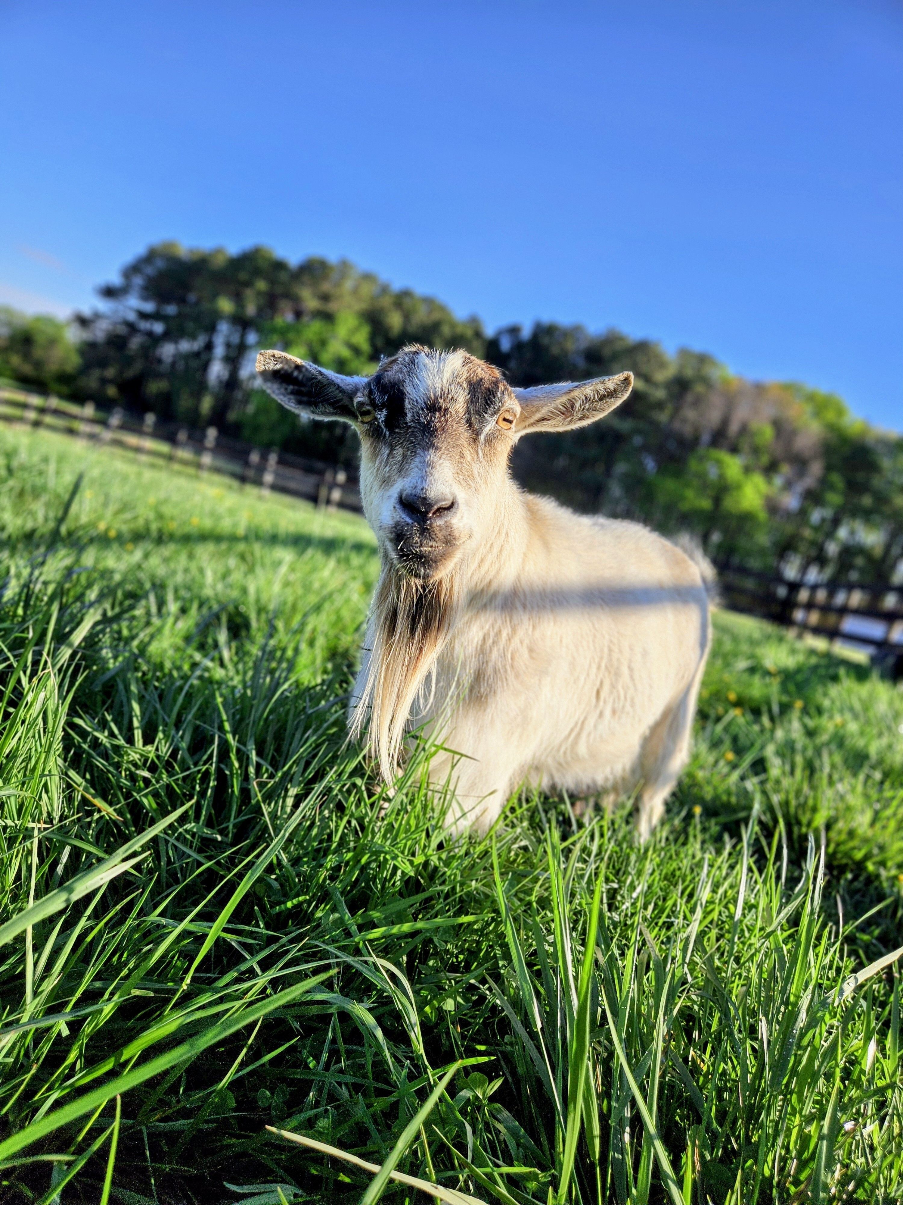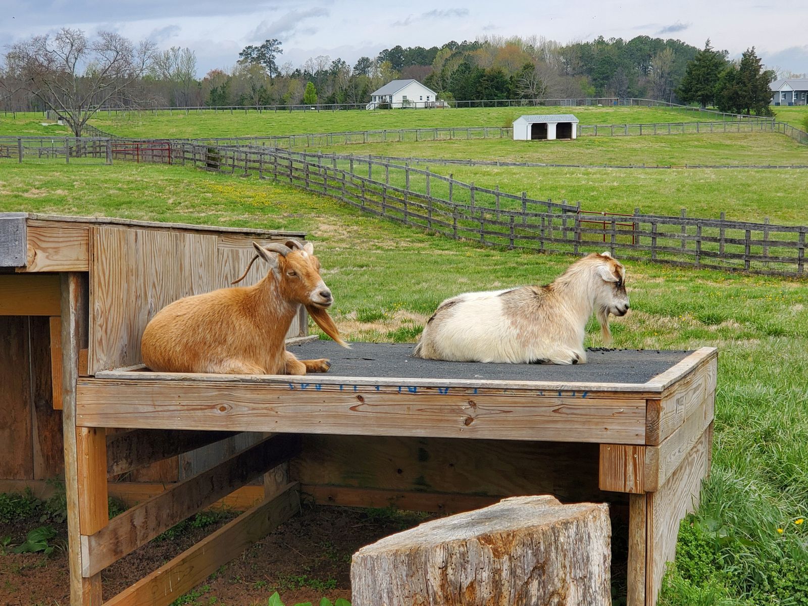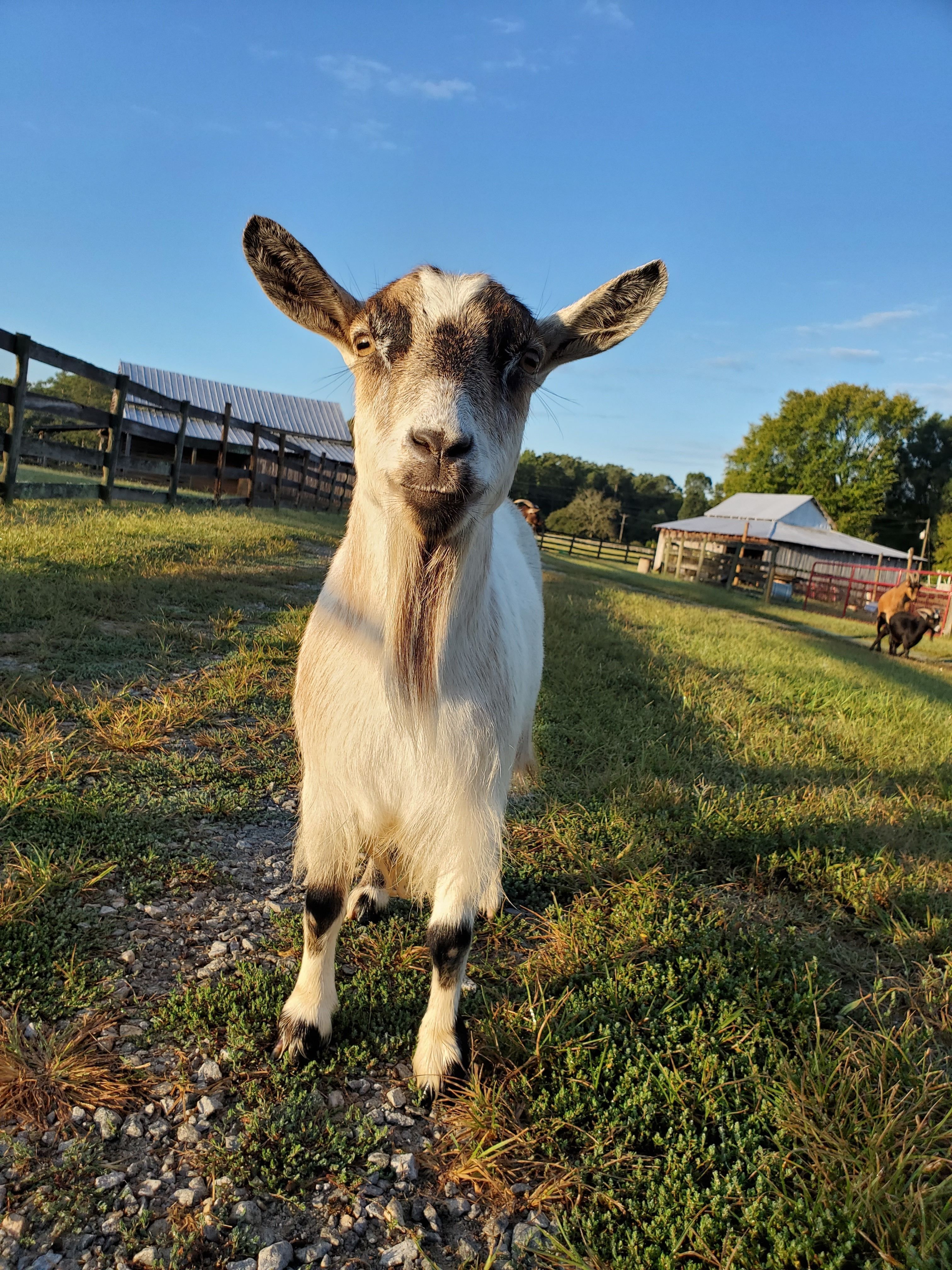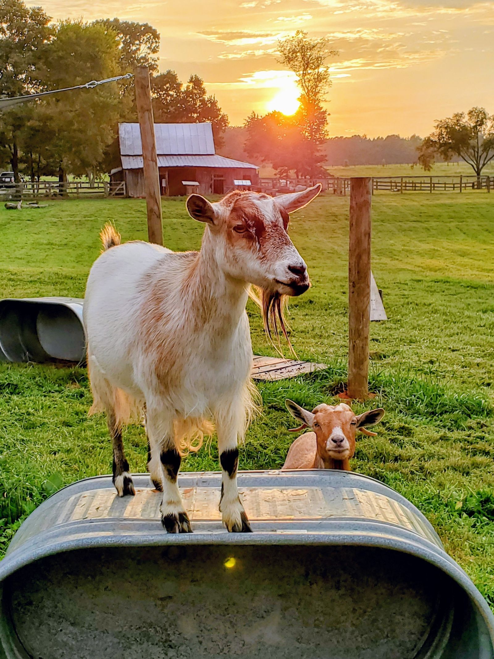 It wasn’t long after having Summer, Stormy & Rocky, I learned how hard it is for mom goats to have their kids pulled from them even when they need to be weaned. So in the Summer of 2016, I was looking to add to our goat family when on July 4th, it was raining all day and I was looking on Craigslist when I saw a mom and baby goat advertised for sale and the baby had been born that morning. I said to myself I have to get them so they are safe and can stay together and luckily I was the first to respond to the post and immediately drove 2 hours in horrible rain and brought them both home. Liberty was a great mom. Luckily both were healthy and it was a completely different experience watching Liberty raise Bell. It was so special to see their mother/daughter bond.