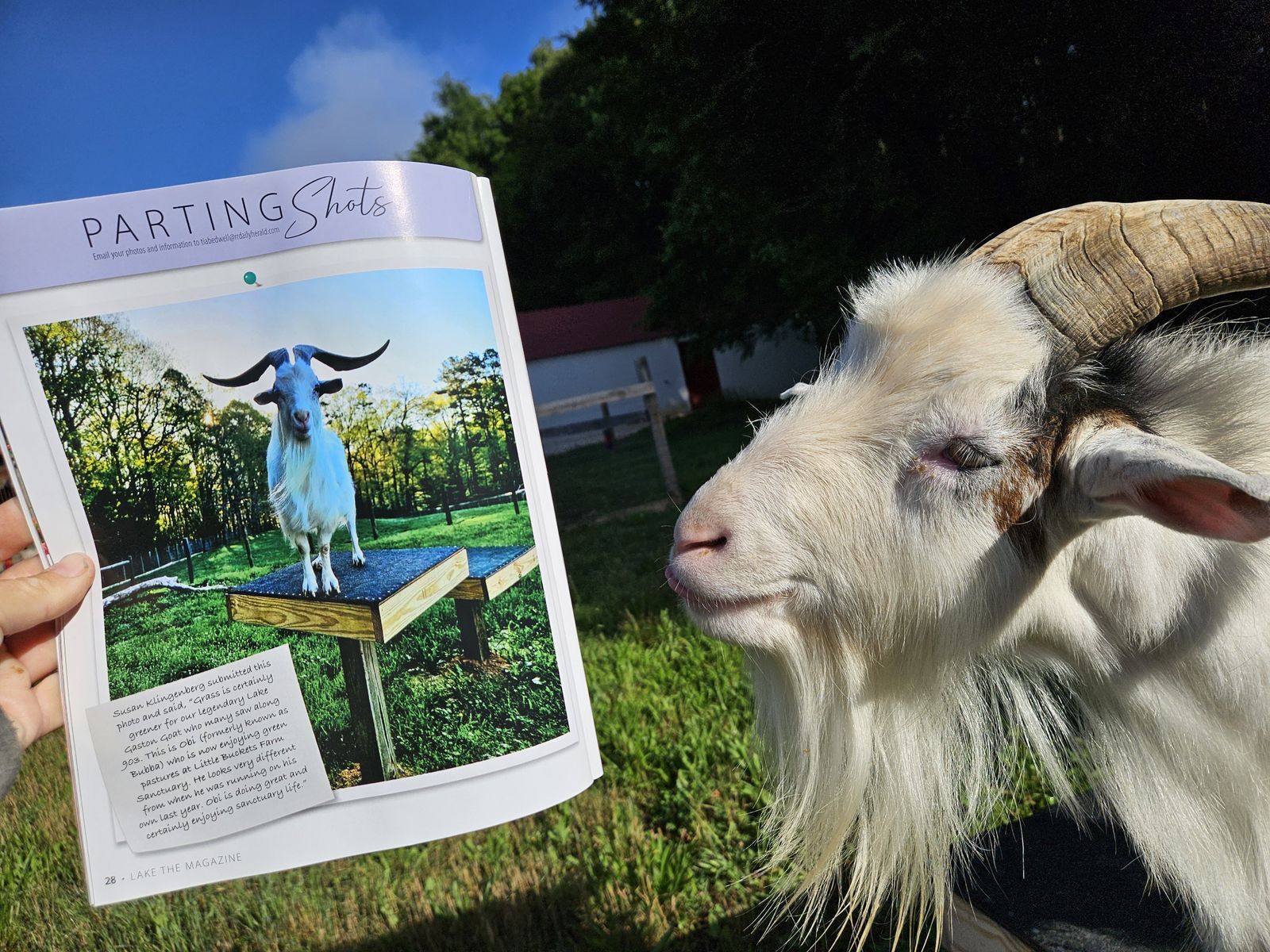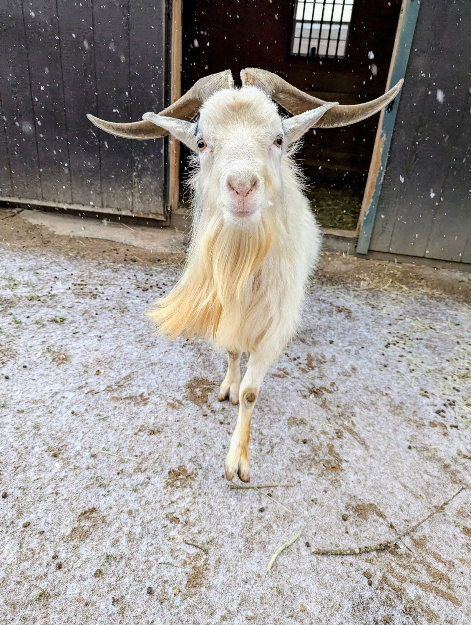Obi was rescued in October of 2024. He had apparently been escaping from his farm and living on his own at different times often seen on the sides of local roads. He found his way to living on a vacant waterfront lot after losing his goat friend to stray dogs. The families on the street started to look after him when they were at the Lake. The lot was heavily hunted and wooded and certainly would have had a lot of predators. Obi was brave and strong and managed to live on his own for several months. At some point the owner tried to catch him and failed and finally gave up on him. I never got all the details on the timeline etc but knowing he was never going back to the farm he lived at, the family on the street found us and reached out to us to help.