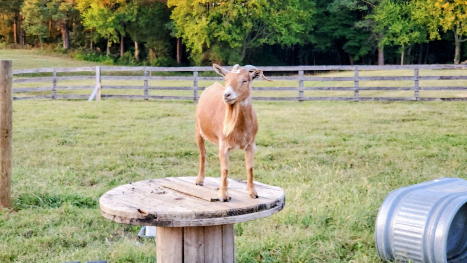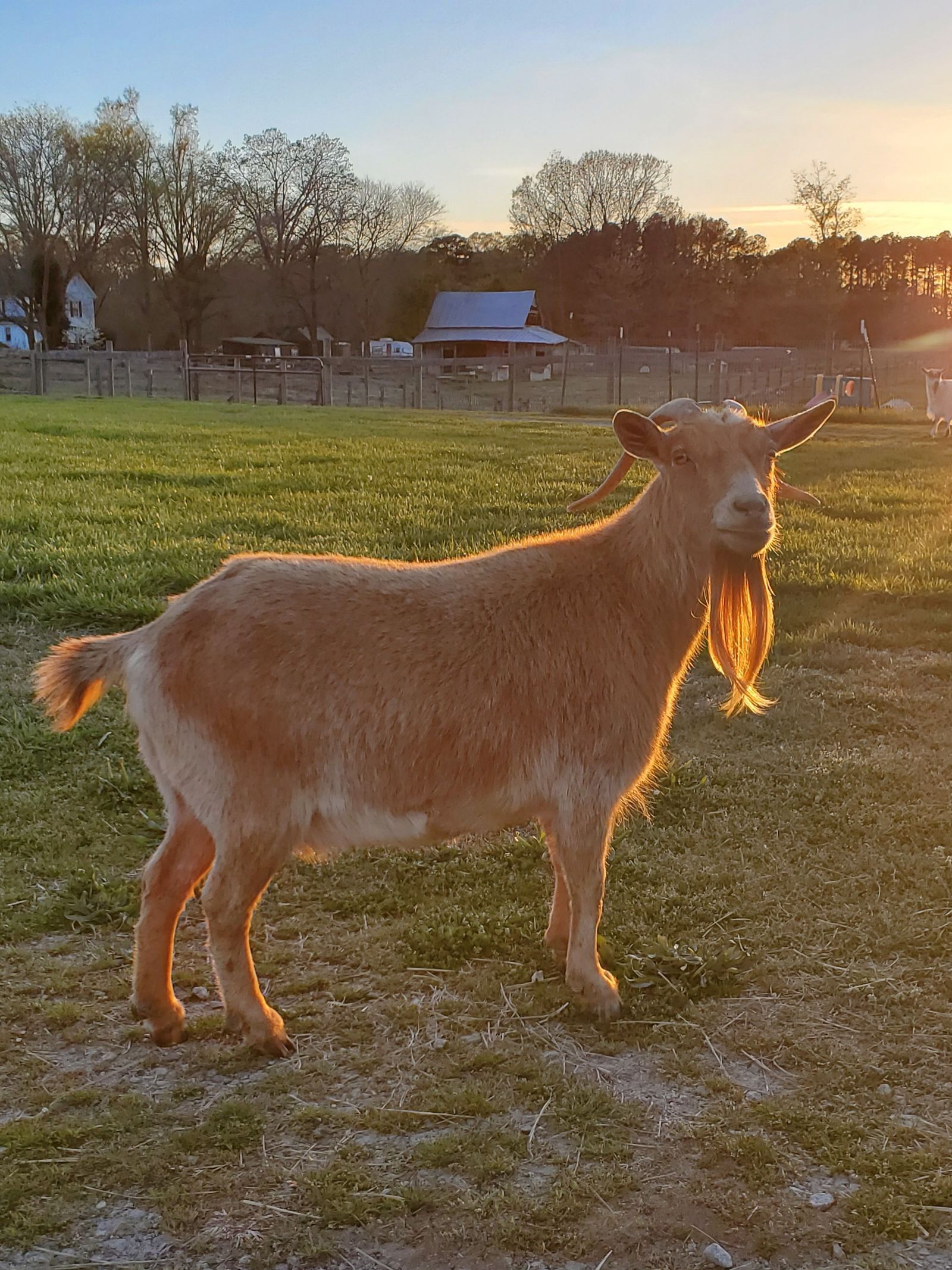 It wasn’t long after having Summer, Stormy & Rocky, I learned how hard it is for mom goats to have their kids pulled from them even when they need to be weaned. So in the Summer of 2016, I was looking to add to our goat family when on July 4th, it was raining all day and I was looking on Craigslist when I saw a mom and baby goat advertised for sale and the baby had been born that morning. I said to myself I have to get them so they are safe and can stay together and luckily I was the first to respond to the post and immediately drove 2 hours in horrible rain and brought them both home. Liberty was an absolute great mom. Luckily both were healthy and it was a completely different experience watching Liberty raise Bell. It was so special to see and to this day, they have that mother/daughter bond.
