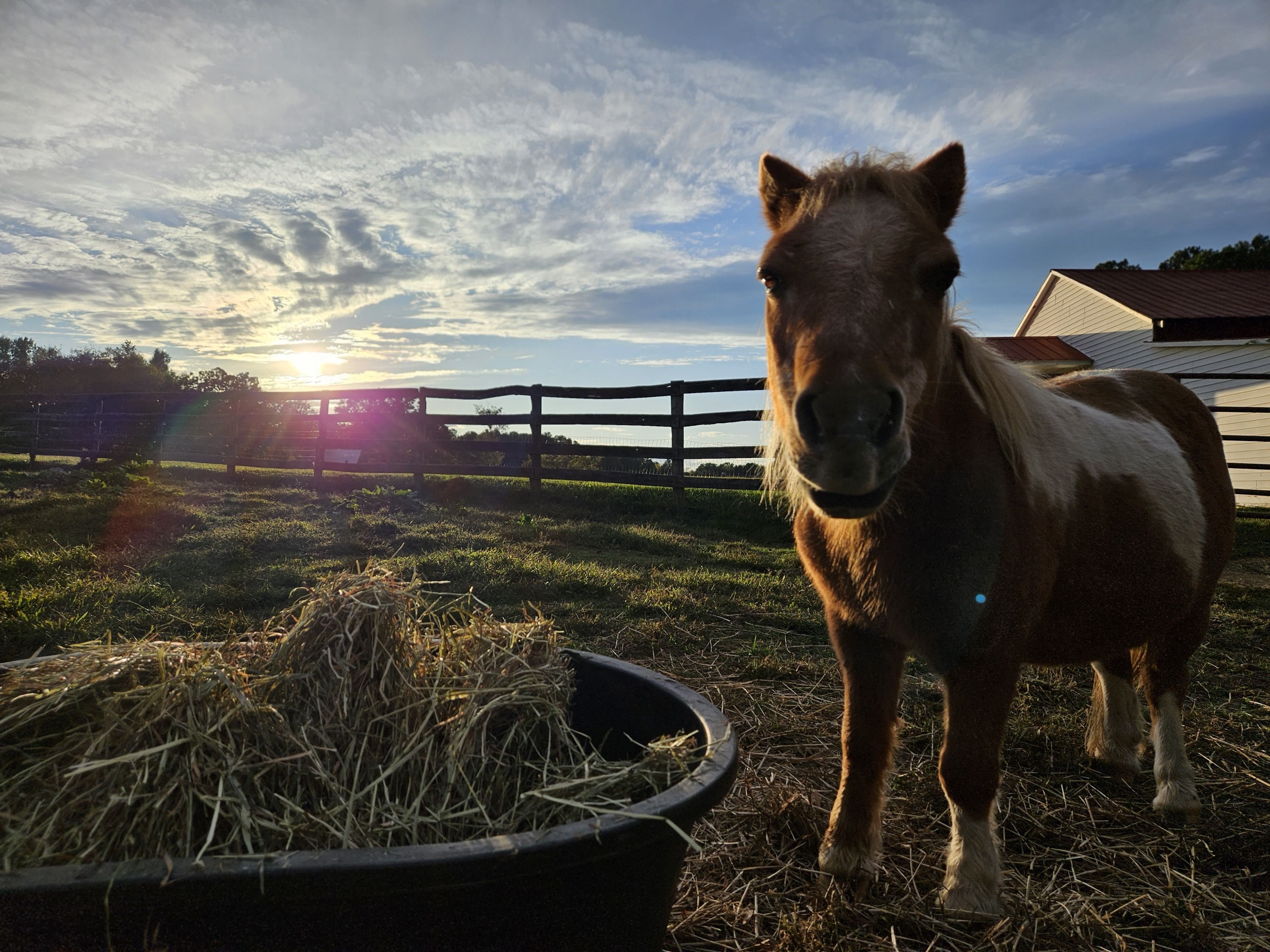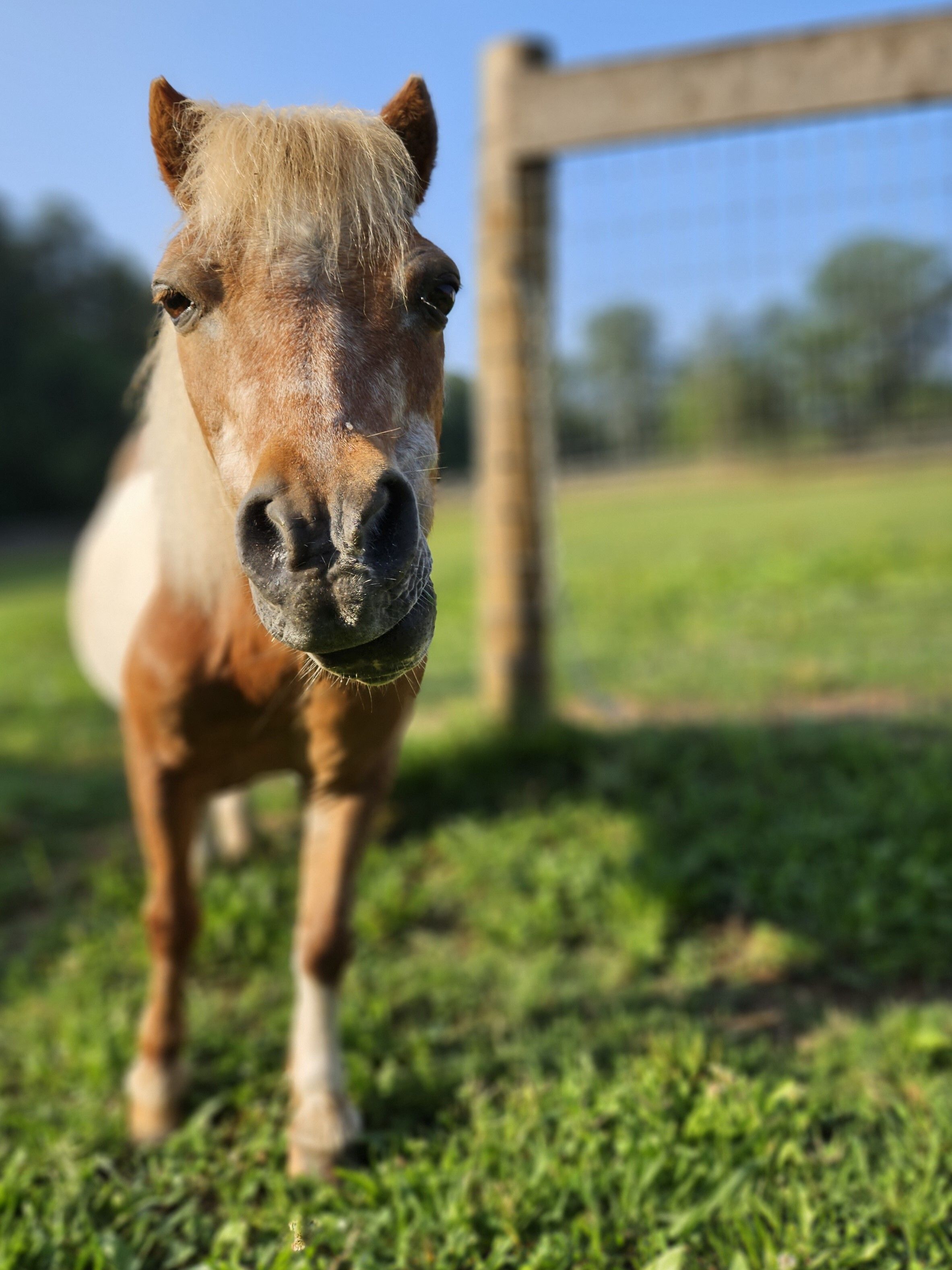 Chester was saved at a livestock auction for just $5 by a friend who has a horse rescue. He was later adopted out but then returned. Instead of going back to her rescue, I decided to adopt Chester myself. This was well before I had Little Buckets or even thought I would ever have my own rescue. This was in March 2016. He loved being with the big boys and often didn't realize his size as he would boss the big boys around when he wanted. He loved his friends, Trigger, Sterling, Chief, and Geronimo.