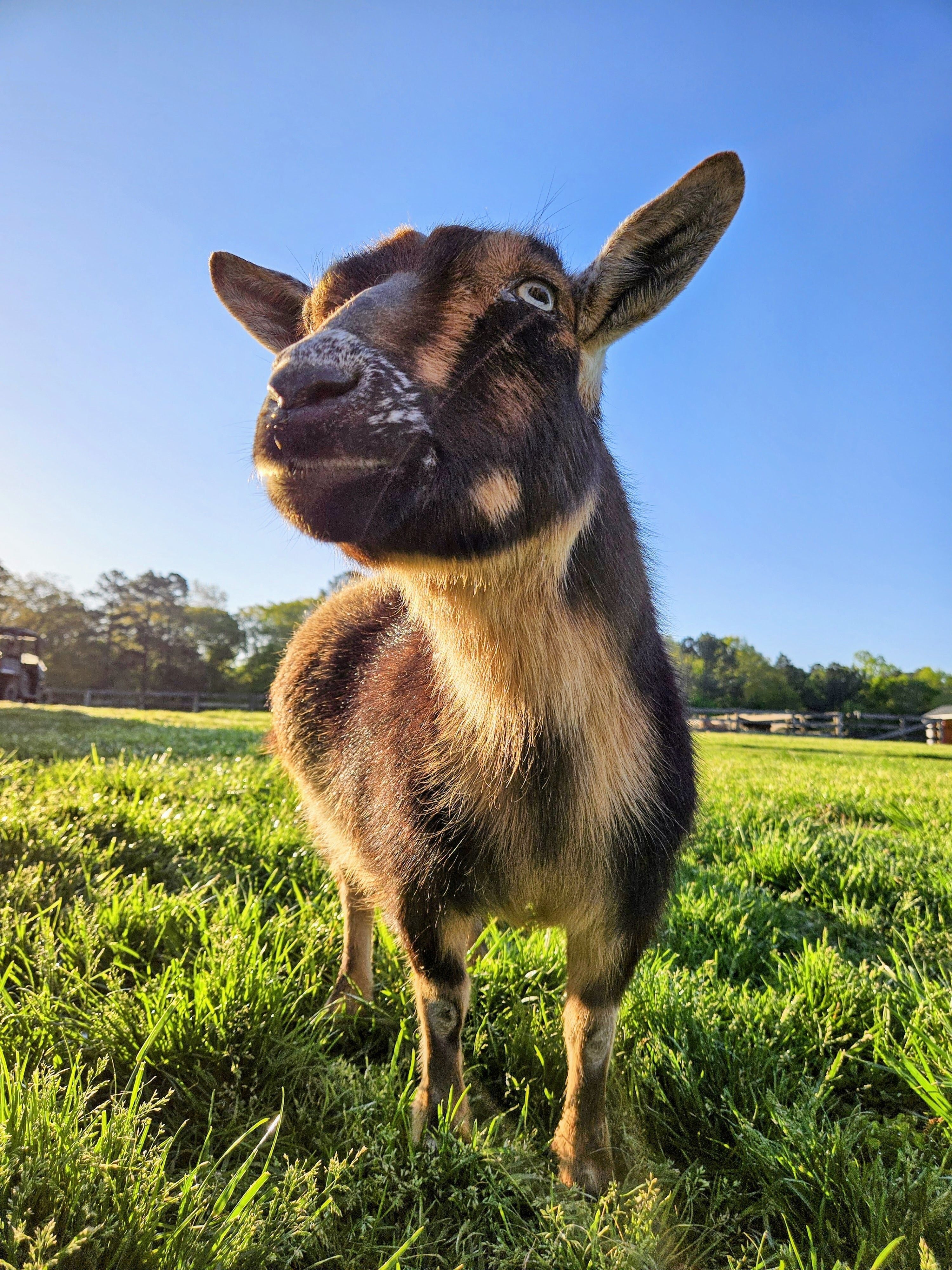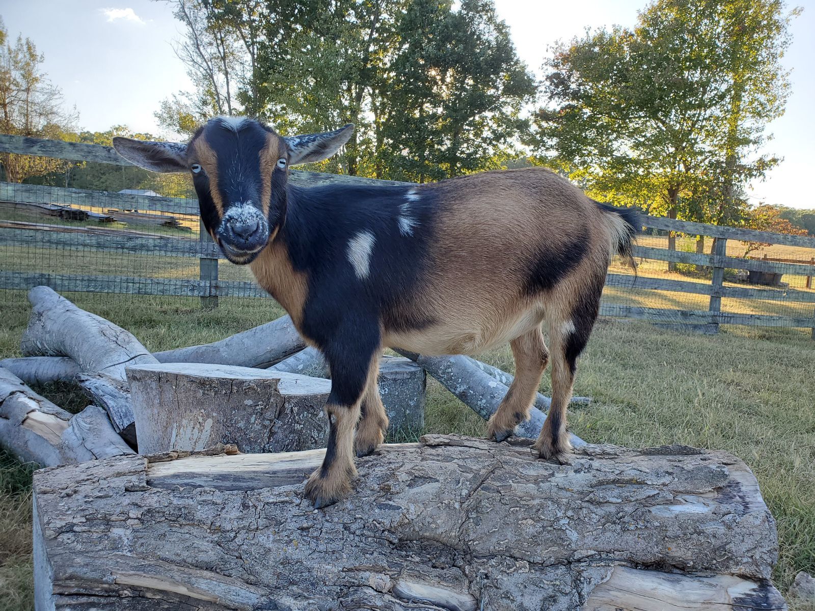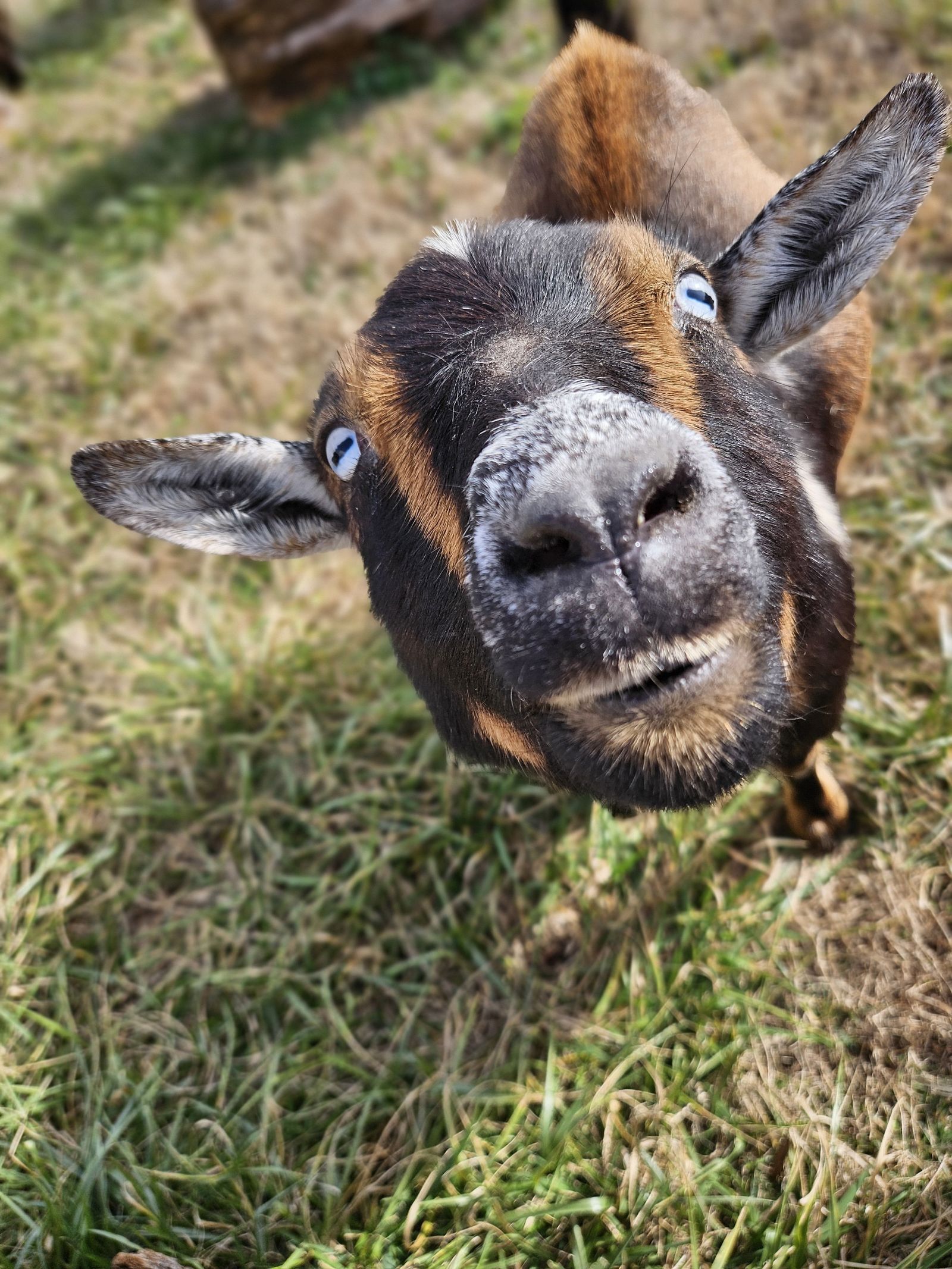 Penny was also rescued from a vet school by a student who had already saved her friend Sprinkles who had issues with her back legs but who was still able to walk. This vet school student reached out to Lawson's Heart (IG account where special needs animals are posted to find homes) to see if she could find a sanctuary for both Penny and Sprinkles as she did not have a farm but who loved Penny and Sprinkles tremendously. She wanted them to have a big field and other goat friends. So Penny and Sprinkles came to us in July 2019. Sadly Sprinkles passed away a few months later and Penny was left without her best friend. She is incredibly sweet and quiet and has slowly befriended Hopie, Blondie and the rest of the gang who she spends her time with. Penny found her place on the farm and was truly friends with everyone. She remained a little shy but brought so many smiles to us.